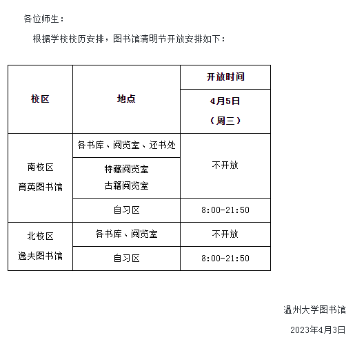 转发图书馆清明节开放安排